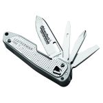 3 1/2″ closed. The most compact offering in the FREE™ family! Featuring 8 Tools: Knife, pry tool, package opener, awl, bottle opener, Phillips/medium/extra small screwdrivers. Laser engraved. Boxed. Made in the USA of US & Foreign Components. (90–95% of materials from USA, 5–10% from imported materials—None from China.)