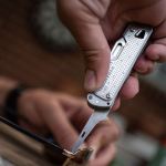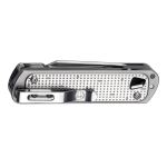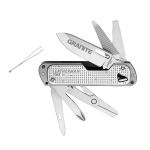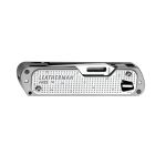 3 1/2″ closed. Minimalist multi tool using Free™ technology. 12 Tools: Knife, spring-action scissors, pry tool, package opener, awl, bottle opener, wood/metal file, Phillips/ medium/small/extra small screwdrivers,tweezers. Comes with a pocket clip attached for easy access. Laser engraved. Boxed. Made in the USA of US & Foreign Components. (90–95% of materials from USA, 5–10% from imported materials—None from China.)