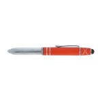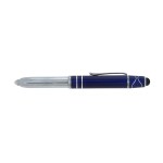 The Legacy Spin 4-in-1 Ballpoint Pen with Fidget Spinner is crafted from aluminum with a colored cap and features two accent rings. This cap-off writing instrutment is equipped with a capacitive stylus for touch screens, an LED light, and black ink making it your all-in-one writing tool for any task, and its added top spinner helps keep you focused with minimal distracting noise. Complies with Prop 65. 1/2″ W x 5 1/4″ H x 5/8″ D