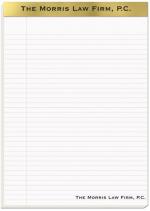 This legal pad features 50 Lb. white sheets with a chipboard back. Pads with a white 80 Lb. gloss cover with a clear coat is available. Sheets are perforated, stapled, and covered with black tape. Additional imprint area is available: 7 ¾”x 10 ½” on the cover. 8 1/4″ W x 11 3/4″ H