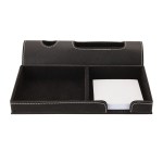 The Lexington leatherette desk organizer with contrast stitching includes a pen stand, 3 1/2″ wide phone holder, accessory tray and 100-page paper pad. Complies with Prop 65. 8 1/2″ W x 7 1/2″ H x 2 1/4″ D