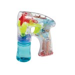 Pull the trigger, watch all the components in motion, the lights flash and the stream of bubbles starts shooting out! Includes an unimprinted 2oz bottle of bubbles (for additional bottles, please inquire). Batteries included. Packaged in retail-style blister pack. 5″ W x 5.5″ H
