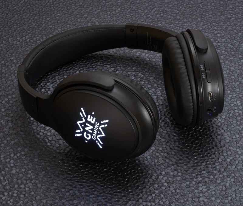 The Light Up Logo Bluetooth Headphones feature extra-soft ear cups for all-day comfort, plus built-in music controls and a microphone to allow you to answer calls and control the volume or music with the push of a button. These Bluetooth headphones are perfect for travel and fold in half to save space. The Light Up Logo Bluetooth Headphones charge in under two hours with the provided Micro USB cable and can be played at max volume for over three hours. Item must be lasered to reveal light-up functionality. 2.95″ D x 6.61″ W x 7.48″ H