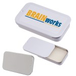 Slider Tin Filled With Our USA Made Premium Lip Moisturizer. Alternative Lip Moisturizer Colors, Flavors And Tin Colors Available, Please Call For Details. Complies with Prop 65. 0.4″ D x 2.4″ W x 1.35″ H