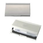 Sleek in design and application, this dual tone silver metal business card holder fits effortlessly everywhere! Holds approximately 10 business cards. Item comes in a white gift box measuring .39 x 2.56 x 4. 3.5″ W x 0.25″ H x 2.25″ D