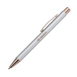 The Lisse Metal Pen features a sleek satin finish barrel that is engraved to reveal your logo in high-polished rose gold. Features a rubberized soft-touch coating for maximum comfort.*Rose Gold Barrel engraves Silver. 0.5″ W