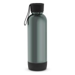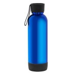 22 Oz. Light-up chrome UV coated Tritan™ water bottle. Lights up laser engraved logo when bottle is lifted (includes touch button to turn on/off). Screw top lid with carry strap; removeable bottom casing houses three AAA batteries (included and replaceable). Not microwave safe; handwash only. Packaged in a retail box. 9.5″ H x 2.8″ W
