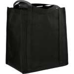 The Little Juno Non-Woven Grocery Tote features an open main compartment with double 22” reinforced handles and a supportive bottom board to hold your items securely. Constructed from recyclable polypropylene materials, this reusable tote is an environmentally responsible alternative to plastic bags. Plus, its gusset and handles can be customized with your logo to help showcase your brand. This tote was previously Leed’s item 2150-01, Little Grocery Non-Woven Tote. 8.00″ D x 12.00″ W x 13.00″ H