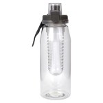 Stay hydrated on-the-go with our convenient 32 oz. refillable water bottle. This sleek bottle features a secure locking lid with a handy lanyard for easy carrying, as well as a detachable fruit infuser to add a burst of flavor to your water. When filled with fruit, the bottle can hold between 28-30 oz. of deliciously infused water. Rest assured, our BPA-free bottle is safe for everyday use, but we do recommend handwashing for best results. Say goodbye to single-use plastic bottles and hello to a stylish, eco-friendly option for staying hydrated wherever you go. Complies with Prop 65. 3.25″ D x 9.75″ H