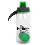 Introducing the eco-friendly 25 oz. refillable water bottle made from recycled materials, complete with a unique floating infuser to add flavor to your hydration routine. This bottle can hold 21-23 oz. of liquid when the infuser is filled with your favorite fruits. It comes with a convenient locking lid and a handy lanyard for easy carrying. Rest assured, this bottle is BPA-free for your peace of mind. Please note that this bottle is not suitable for dishwasher or microwave use. Elevate your hydration game with this stylish and sustainable water bottle. Complies with Prop 65. 3″ D x 9″ H