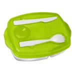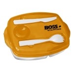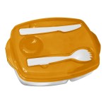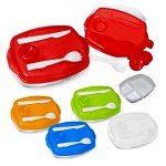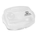 Stay organized and prepared with our versatile three-compartment lunch kit. This kit comes complete with a convenient plastic knife and a spoon/fork combo for easy eating on the go. The separate small container is perfect for storing ingredients or snacks. You can rest assured knowing that our lunch kit is freezer and microwave safe, as well as BPA-free for your peace of mind. Complies with FDA, Prop 65. 9″ L x 6.75″ H x 2.5″ W