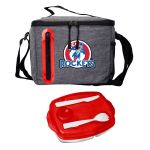 Introducing the stylish Oval Line Lunch Cooler featuring vibrant colorful accents. This innovative cooler comes with a locking lid lunch tray that includes three compartments, perfect for organizing your meals. Additionally, it also includes a set of durable plastic utensils for your convenience. Stay organized and stylish on-the-go with this modern lunch cooler. Complies with FDA, Prop 65. 9″ L x 6.5″ W x 7.5″ H