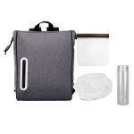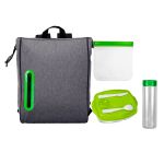 Elevate your lunch experience with our Oval Line Lunch Cooler featuring vibrant accents. The Locking Lid Lunch Tray is equipped with three compartments and includes plastic utensils for added convenience. Keep your sandwiches fresh in our reusable sandwich bag with a secure zip closure. Stay hydrated throughout the day with our Clear View 24 oz. Bottle. Experience style and functionality with our lunch essentials. Complies with FDA, Prop 65. 9″ L x 6.5″ W x 7.5″ H