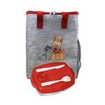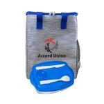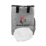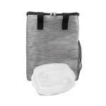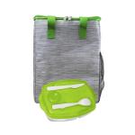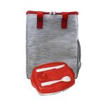 Eco-friendly Tote Cooler featuring vibrant accents and made from recycled materials. Keep your meals organized with the Locking Lid Lunch Tray, which includes three compartments and comes with durable plastic utensils. Complies with FDA, Prop 65. 9.75″ L x 12″ H x 6″ W