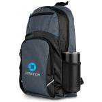The Logan RPET 600D Backpack combines modern style with everyday functionality. Made from 100% 600D RPET polyester, it features padded, adjustable shoulder straps for all-day comfort. A dedicated compartment securely fits laptops up to 15″, while two front zippered pockets and dual side mesh pockets provide easy organization. A built-in headphone port adds extra convenience for on-the-go listening. Complies with Prop 65. 15″ W x 19″ H