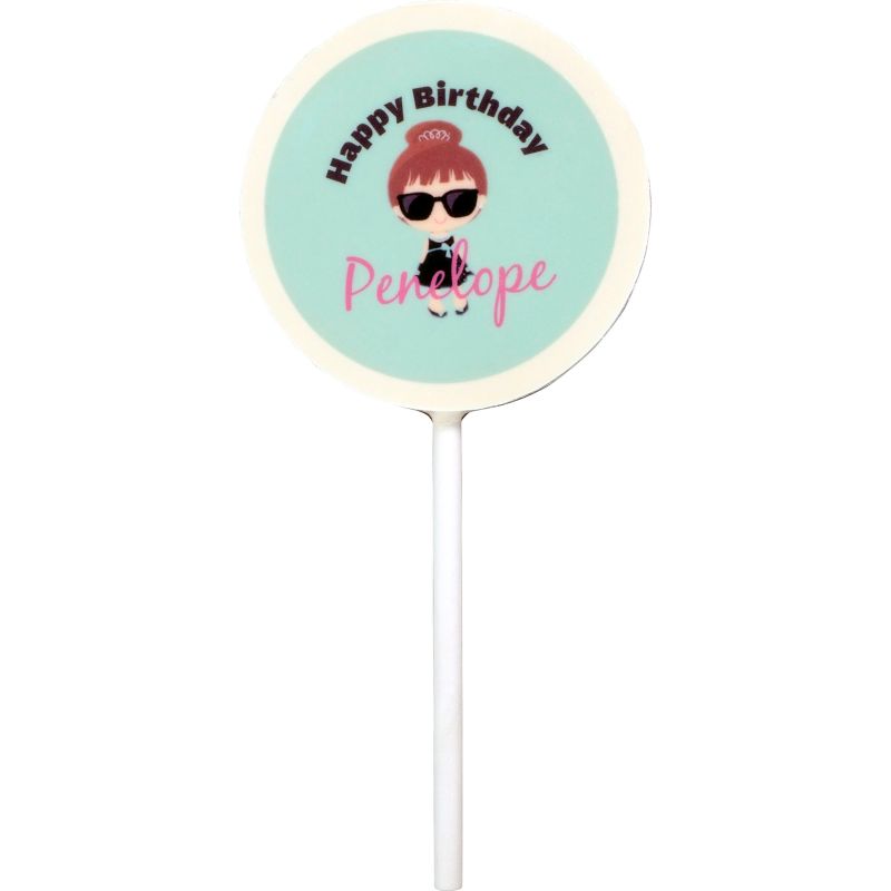 Layered Dark and White fancy chocolates on a stick. Each chocolate has a Full color logo. Individually wrapped chocolate pops are Made in USA. No Special Quantity pricing. Complies with Prop 65. 2.25″ Diameter