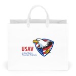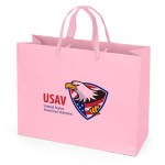 The London Matte Eurotote is made with matte-laminated paper and includes 14″ long woven handles, a reinforced fold-over top, and a cardboard bottom insert. 13″ W x 5″ D x 10″ H