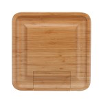 The Lorenzi Cheese Set is the perfect appreciation gift for your wine and cheese loving clientele. This stylish bamboo cheese board and serving tray features a pull-out drawer and includes 4 stainless steel tools with bamboo handles. Included in the set are a hard cheese knife, semi-hard cheese knife, cutting knife and cheese fork. The tray and all utensils are FDA compliant. Complies with Prop 65. 13 3/8″ W x 13 3/8″ H x 1 1/2″ D
