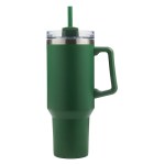 Take the Lucas 40 oz. Travel Mug, a portable super-capacity coffee cup, with you on your daily commute and place it safely in the car cup holder. This mug has double wall stainless steel construction, and its 18/8 food-grade steel inner wall and copper liner can withstand daily use and will keep your drink cold for 30 hours and hot for 18 hours. Its threaded lid with rotating closure gives you the option to drink from the sipper hole or from the included drinking straw. The large, ergonomic handle makes the Lucas easy to carry and its high-quality durable powder coating prevents scratches, making it perfect for indoor and outdoor use. FDA compliant and BPA free. Complies with Prop 65. 5 7/8″ W x 10 3/4″ H x 4″ D