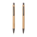 Lucky Clicker Bamboo Pen & Pencil Set features all-natural eco-friendly bamboo barrels and sleek gunmetal accents. Packaged in a wood grain finished recycled craft paper box.