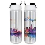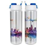 Quench your thirst on the move with our sleek and practical 24 oz. reusable water bottle, complete with a striking full-color design. This bottle is designed with a convenient pop-up lid and handle for effortless transport. Crafted with care in the USA, you can count on quicker shipping. Feel confident knowing this BPA-free bottle is ideal for daily use, although we advise against using it in the dishwasher or microwave. With a patent pending, you can enjoy peace of mind while staying hydrated in style. Complies with FDA, Prop 65. 2.75″ Diameter x 9.5″ H