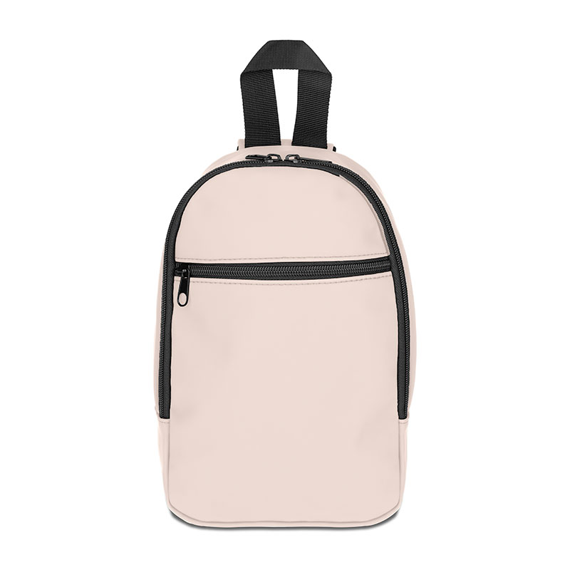 The LuxSling Soft PU Premium Shoulder Backpack is crafted from Eco-friendly 0.03″ recycled PU leather with a weight of 360gsm, offering both durability and sustainability. Featuring a smooth nylon zipper and a sturdy POM plastic buckle, this backpack ensures secure storage for your belongings. The adjustable straps are made from strong polypropylene, providing comfort and long-lasting wear. Ideal for everyday use, it combines style and functionality in a sleek, compact design. 7″ W x 11″ H x 3″ D