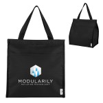 Made Of 600D rPET With Foil Laminated Interior Lining And 2.5MM Foam Insulation. Made From Post Consumer Recycled Materials. 6.5″ D x 10″ W x 11″ H