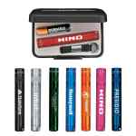 Weighing less than 1 ounce and 3 ¼” in length the Maglite Solitaire offers the same precision engineering and craftsmanship found in every Maglite Flashlight. The Solitaire is compact enough to fit conveniently into pockets, purses, and cases. Comes with key ring/lanyard attachment, 1 “AAA” battery and packaged in a sleek, black plastic presentation box. Laser Engrave on barrel. Maglite is a USA Manufacturer. Complies with Prop 65. 3 1/4″ L