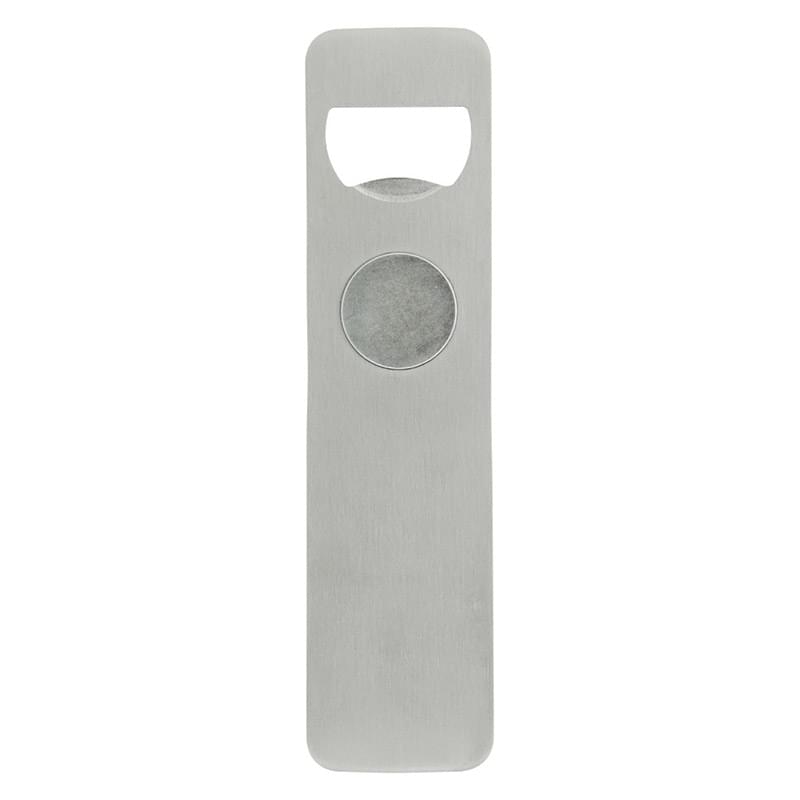 It’s made of stainless steel, measures 6″ x 1 1/2″, comes in a silver color, and features a magnet so you can conveniently place this on the refrigerator or stove top. This is perfect for cracking into a cool, refreshing drink at a moment’s notice. For a permanent imprint, this item can be laser engraved. Complies with Prop 65. 6″ W x 1 1/2″ H