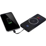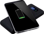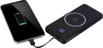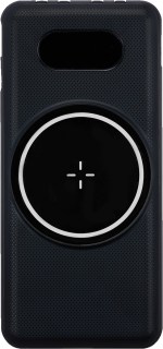 Charges through most protective cases Wall charger not included Lightning Output: 5V/2A Wireless Output: up to 15W Magnetic, wireless charging surface holds your device Type-C Input: 5V/3A, 9V/2A, 12V/1.5A USB Input: 5V/2A Power bank capacity: 10,000 mAh NOTE: If your device is not compatible with wireless charging you may require external wireless charging receiver or receiver case ABS black plastic shell Features 4 different built-in cables for device charging: Type-C, lightning, micro-USB,. 5.875″ D x 2.75″ W x 0.875″ H