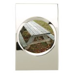 Sleek chrome hinged clock and photo frame. Analog clock features a satin finish face and sweep second hand. Photo frame will hold a round 1 3/16″ image. Complies with Prop 65. 1 1/2″ W x 2 1/2″ H x 1″ D