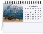 This tent calendar features 12 calendar sheets made with 80 Lb. gloss text paper that include front and back month-at-a-glance with room to write. Calendar is printed in back only and the back of the last calendar sheet has a year-at-a-glance calendar for the current and next year. The pre-scored back folds into an easel and is made from white cover stock that can be printed on 2 sides. Easel back has “Emergency Phone Numbers” and “Future Planning” areas. Bound with black Wire-O. Measures 5 13/16″x 6 ¼” flat for mailing. 5 13/16″ L x 4 1/2″ W