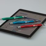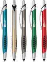 The Malibu Stylus Pen features bold, silver accents and a Comfort-Inlay™ Grip for smooth writing. It comes with black ink only & imprint colors available are black, silver, or white. The stylus works on any smart device. Customize with your screen printed logo/art & information. Complies with Prop 65.