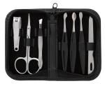 This travel-ready manicure set includes everything you need to keep your nails in great shape. The compact zip-around case holds nail clippers, scissors, tweezers, 3 nail pushers, and a nail file. Complies with Prop 65. 4.5″ W x 2.625″ H x 0.875″ D