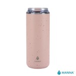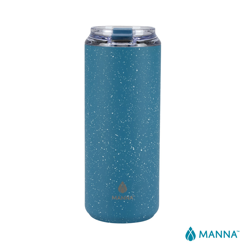 Stay hydrated in style with the Manna 18 oz. Tall Boy Tumbler, built for durability and superior temperature control. Its double-wall stainless steel, vacuum-sealed construction ensures drinks stay hot for up to 6 hours or refreshingly cold for 24 hours. The sleek, speckled finish exterior offers a comfortable grip and long-lasting durability, while the translucent screw-top lid with a secure slider closure helps prevent spills. Designed to fit most car cup holders, this tumbler is the perfect. Complies with Prop 65. 3″ W x 7 1/2″ H x 3″ D