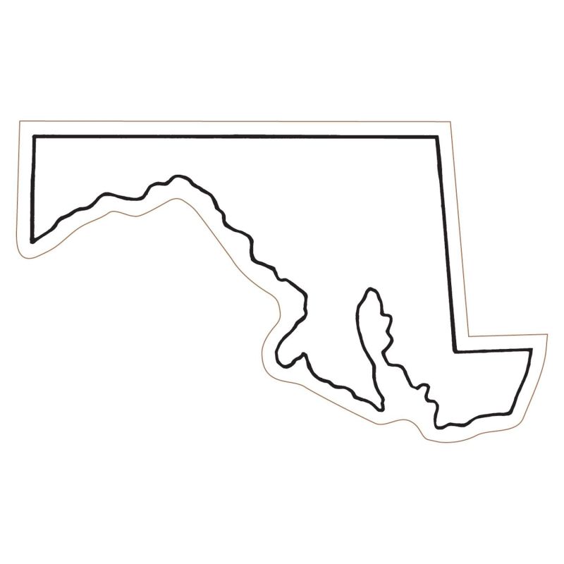 Magnet shaped like the state of Maryland. Motto: Fatti maschil, Paole femine. Nickname: The Old Line State. 3.875″ W x 2.34375″ H x 0.01″ D
