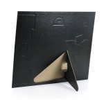 The simple narrow frame holds a single 8″ x 10″ Certificate. Black wrapped chipboard with a decorative gold foil border and dual easel back plus hanging tabs for either vertical or horizontal format. Prices include a one color gold foil-stamped imprint in a 6″w x 1/4″h area, please specify where imprint is to be on top or bottom. Clear acetate protector available, see options. 9″ L x 11″ W