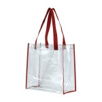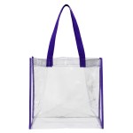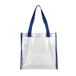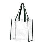 Go for the touchdown with this new clear Stadium Tote Bag with popular trim color options. The 20″ long reinforced handles make it easy to carry with you all day. Meets new Stadium Bag Policy Guidelines! Sports fans will be cheering all season long. Material: Vinyl with 80GSM Non-Woven Polypropylene Side Accents and Polypropylene Webbing Handles. Thickness: .25mm. Complies with CPSIA, Prop 65. 12″ W x 12″ H x 6″ D