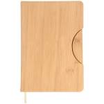 Indulge in the perfect combination of style and practicality with the luxurious Maui Faux Bamboo Notebook with Phone Holder. Crafted in A5 size, this notebook boasts a sophisticated polyurethane cover that beautifully mimics the intricate details of bamboo, adding a touch of sophistication to your daily note-taking routine. The innovative design includes a fold-out front cover that doubles as a convenient cellphone holder, making it an ideal accessory for your busy workday, study sessions, or productive on-the-go moments. Complies with CCPSA, CPSIA, Prop 65. 5 3/4″ W x 8 1/4″ H