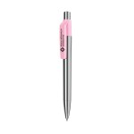 Chrome finish metal barrel, tip and push button. Solid color clip with a glossy finish. Retractable with return sprint. Pad print or 4CP on the clip or laser imprint the barrel. This pen has black ink. 0.5″ W x 5.6″ H x 0.47″ D