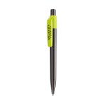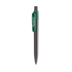 Titanium finish metal barrel, tip and push button. Solid color clip with a glossy finish. Retractable with return sprint. Pad print or 4CP on the clip or laser imprint the barrel. This pen has black ink. 0.5″ W x 5.6″ H x 0.47″ D