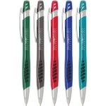 Utilize 5 lines of free copy for this great LaserSharp pen! Balanced weight metalized pen. Slanted multi-pad grip. Complies with Prop 65.