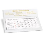 The Medalist Desk Calendar includes a 1 color standard color foil-stamped imprint with a flip out phone/address directory and 5 3/8″ x 2 5/8″ Memo style 13 month date pad. Standard in White, Dark Brown, Maroon or Blue, all with a gold imprint, other than standard imprint colors available with an upcharge. Mailing envelopes are included, calendars not inserted. 6 3/8″ L x 5″ W