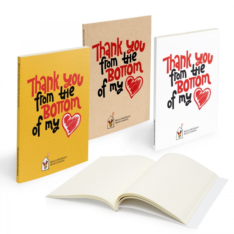 Medio perfect bound notebook 5″ x 7″ with 150 pages. 5″ L x 7″ W