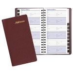 This address book has Leatherette Cover and wire bound. A-Z leatherette tabs, and 6 entrees per page. 3 1/2″ W x 6 1/2″ H