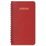 This address book has Leatherette Cover and wire bound. A-Z leatherette tabs, and 6 entrees per page. 3 1/2″ W x 6 1/2″ H