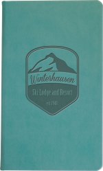 Smooth, faux leather hard covers with a sewn book binding. Includes a blind deboss imprint and 80 sheets of ruled, quality wood-free paper. Features a pocket on inside back cover, matching satin ribbon bookmark, and elastic privacy closure. Imported book, decorated in the USA. 5″ W x 8.5″ H