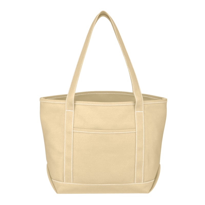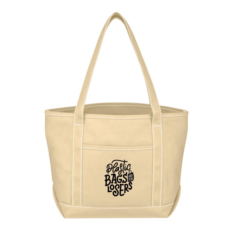 This stylish boat tote is a timeless and versatile bag, perfect for everyday use, beach days, or market runs. Each one is made of 24 oz. cotton canvas with handles and plenty of bag colors to meet your needs. Customize yours with a brand name, logo or message to create a promotional product that your customers will love! Handle: 30″. 19″ W x 13″ H x 6.5″ D