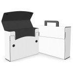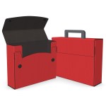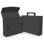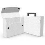 Introducing the portfolio with optional snaps or Velcro? to hold letter size paper or product. This is the perfect product for a new product launch kit or collateral. With plastic handle and curved flap, this elegant and stylish briefcase is sure to impress. Complies with FSC, Prop 65. 12.25″ W x 9.5″ H x 3″ D