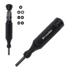 Made Of S2 Steel And ABS. Premium, High Quality Craftsmanship. Ranked Among The Top 15 Tool Brands By The NY Times. Multi Bit Screwdriver With Seven Hex Bits And One Nut Driver. Complies with Prop 65. 8.12″ H
